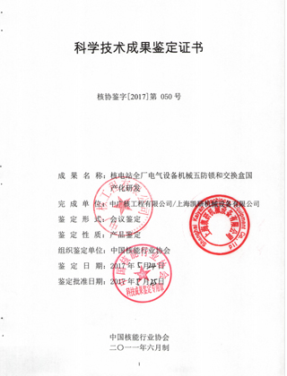 科學(xué)技術(shù)成果鑒定證書(shū)(五防鎖)